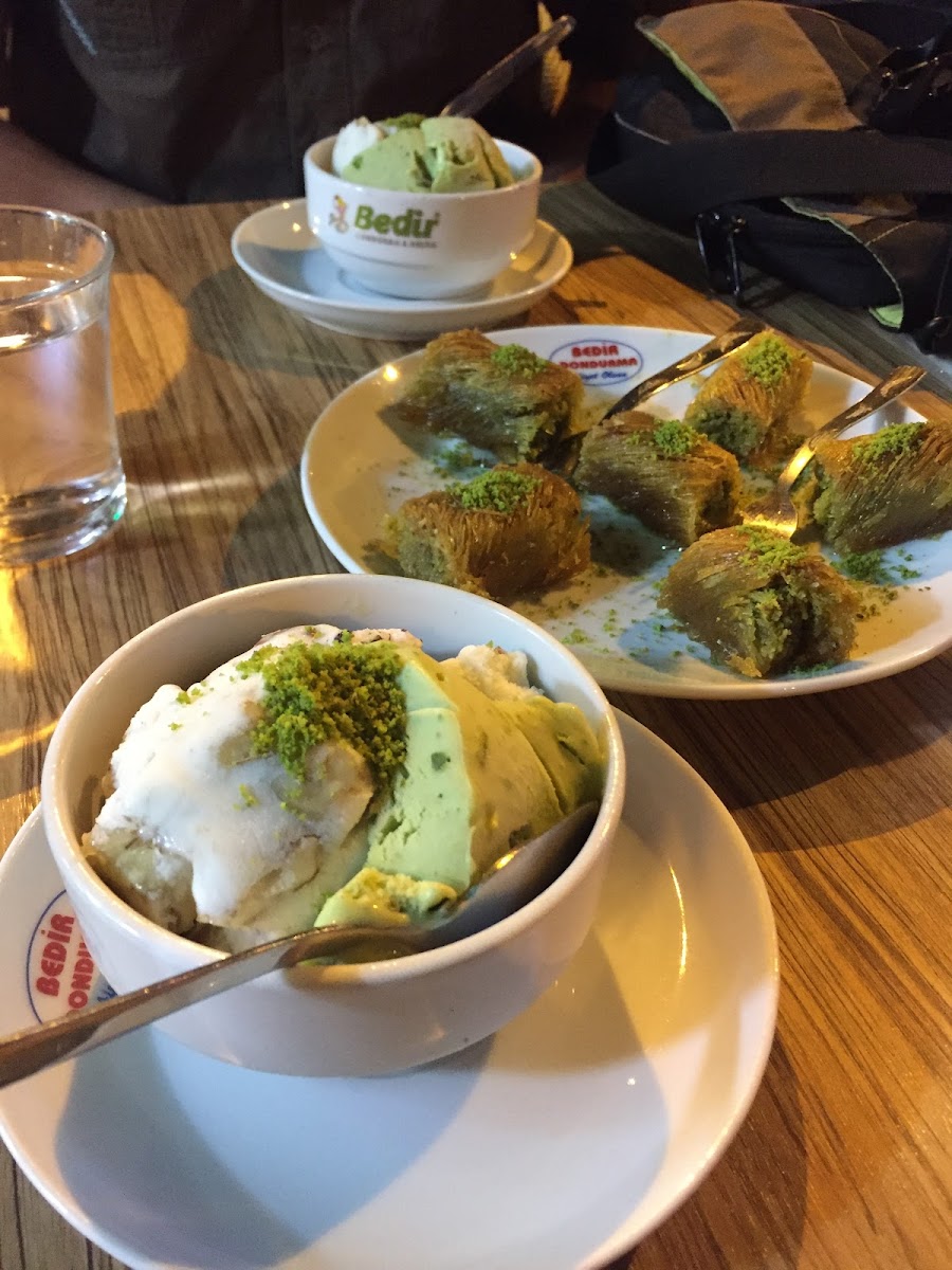 For those with a sweet tooth, Bedir Dondurma offers Burma Kadayıf, a traditional Turkish dessert that pairs wonderfully with the ice cream. The crispy kadayıf dough is wrapped around a sweet filling and served hot, making it an irresistible choice for anyone wanting to try a unique and flavorful dessert. Another must-try is the Sakız Helva, a chewy and satisfying treat made with mastic, which adds a unique aroma and taste to the mix.